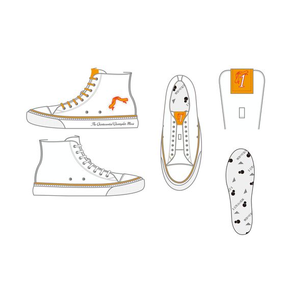 フェアに合わせた「ストリートファッション」の描きおろしイラストにて五つ子が着用しているスニーカーを商品化しました!キャラクターのモチーフをワンポイントプリントであしらい、タン・靴ひもはキャラカラーで仕上げました♪五つ子ちゃんとお揃いのスニーカーでぜひお出かけしましょう♪