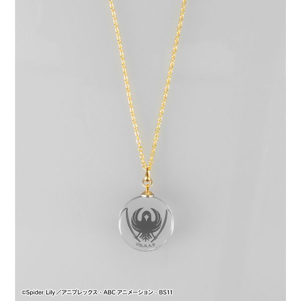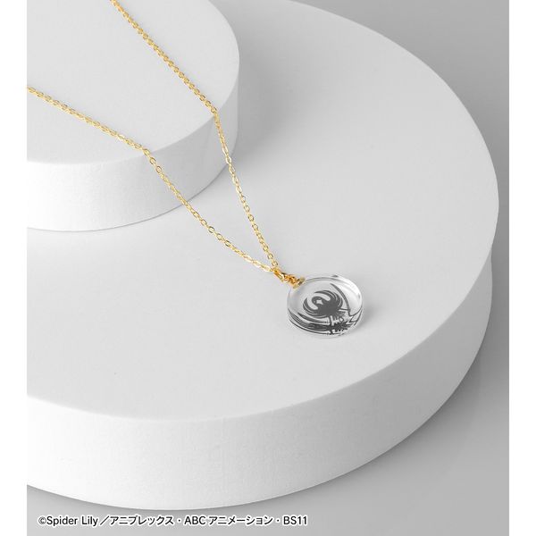 作中に出てくる八咫烏(ヤタガラス)のロゴマークをガラスネックレスに仕上げました。