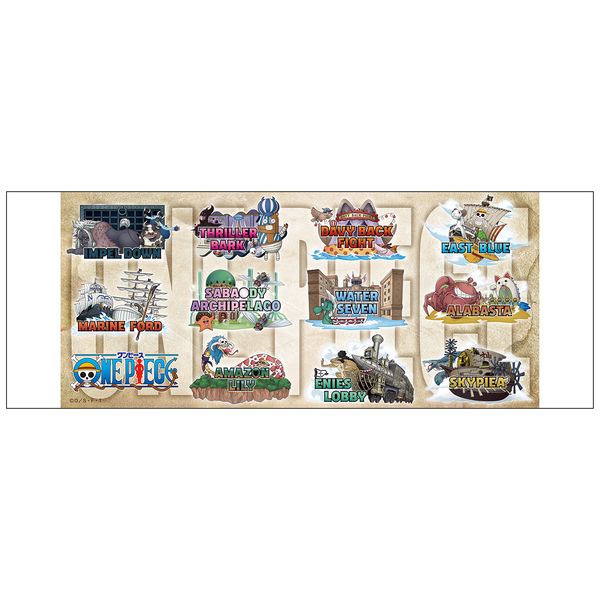 偉大なる航路前半のエピソードのモチーフイラストを使用したスーベニアシリーズの総柄マグカップです。