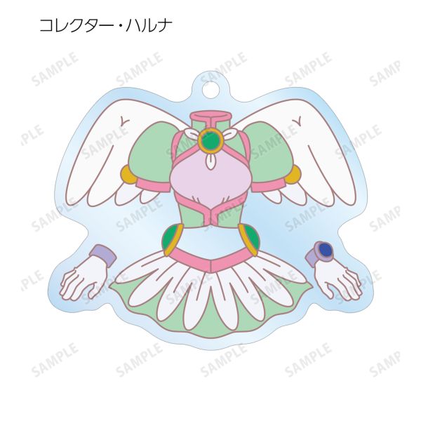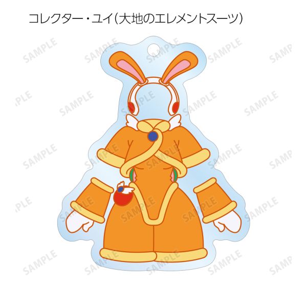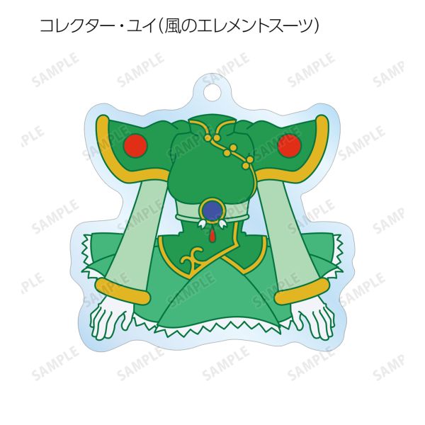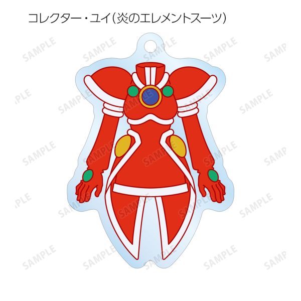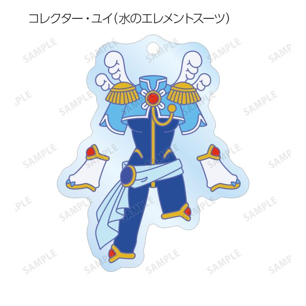 コレクター・ユイ、コレクター・ハルナ、コレクター・アイのエレメントスーツのイラストをアクリルキーホルダーに仕上げました。