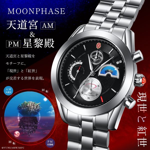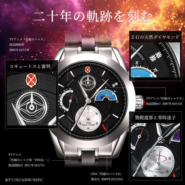 2005年に始まったTVアニメ「灼眼のシャナ」の物語から20年。アラストールのコキュートスや審判を象った意匠、贄殿遮那をイメージした秒針、紅世と現世が交差するムーンフェイズなど、随所に作品世界を刻んだアニバーサリークロノグラフが登場。