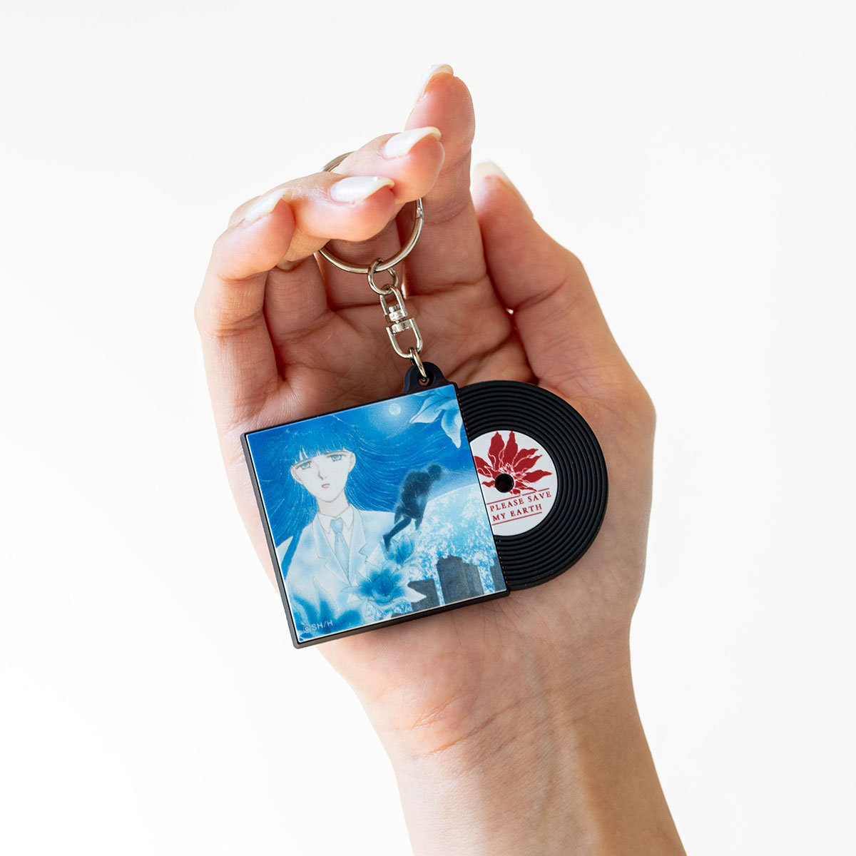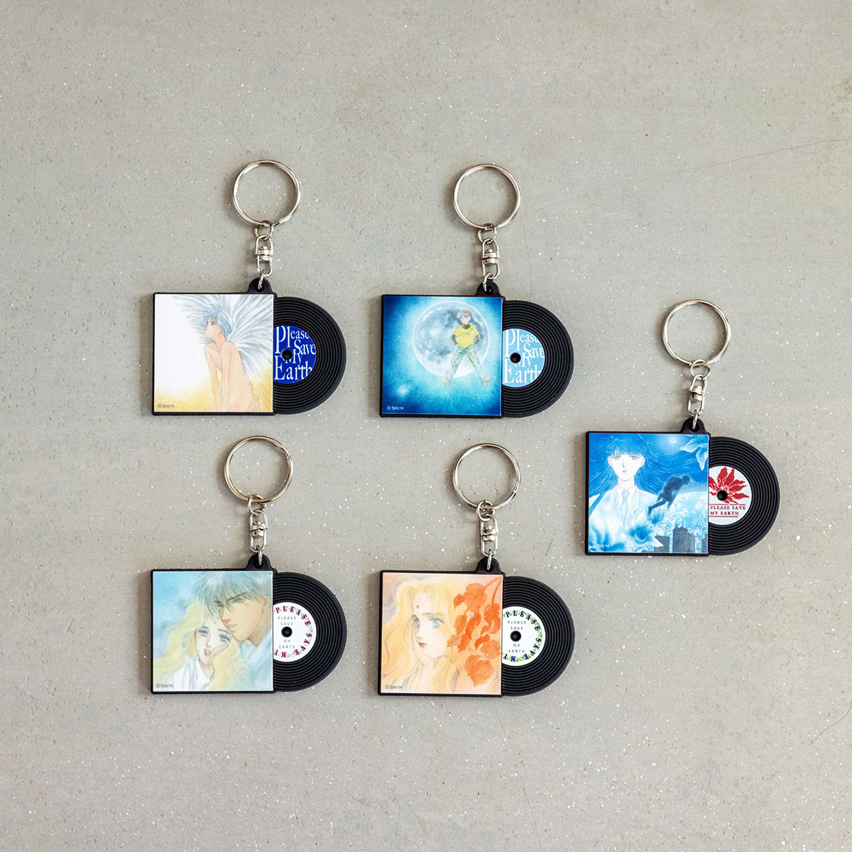 これまでにリリースされた「ぼく地球」CDと、アニメLDのジャケットイラストを、レコードデザインのラバーキーホルダーにしました。音楽が聴こえてきそうな、LIVEならではのアイテムです。